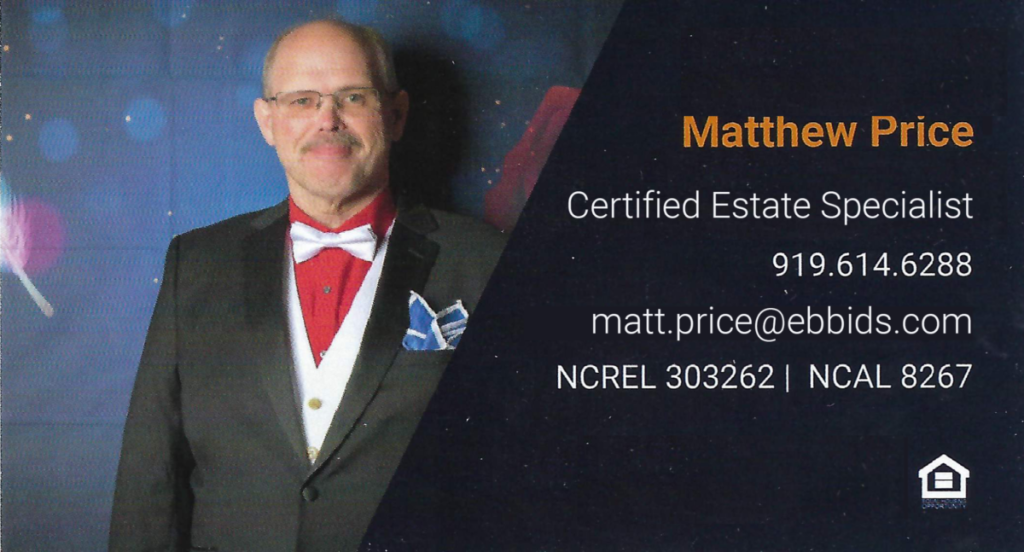 Matthew has also demonstrated significant leadership within the auction community, serving as President of the Auctioneers Association of North Carolina (2018) and remaining active in both state and national associations. His involvement reflects his commitment to raising professional standards, supporting fellow auctioneers, and advocating for consumer protection and industry advancement.